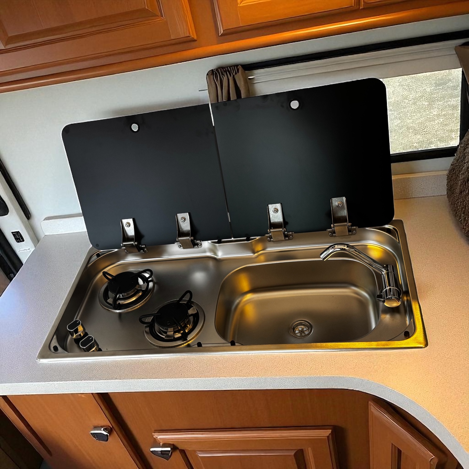 Incluye griferia METALICA monocomando rebatible.